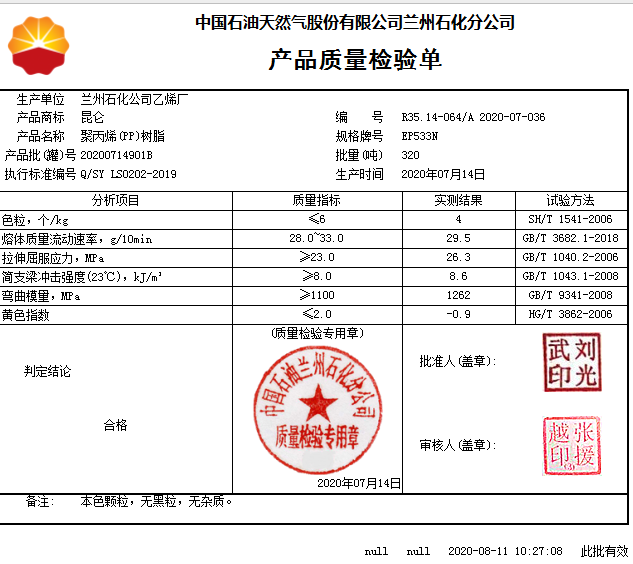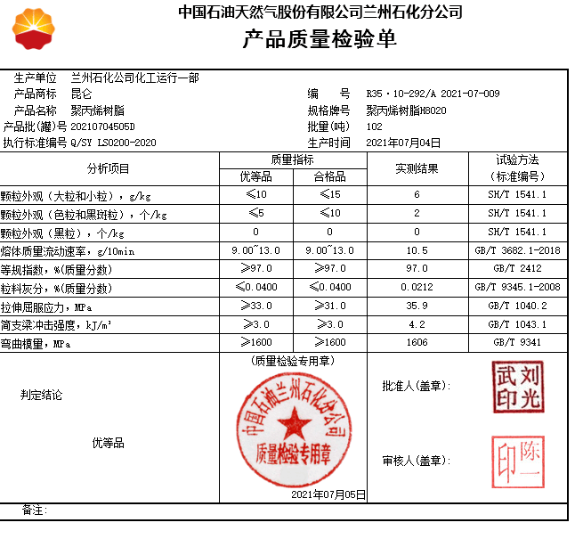 丙纶切片BL产品符号:PPBL兰港石化材料类型:标准新料特性级别:标准加工级别:注塑级,挤出级用途级别:线材